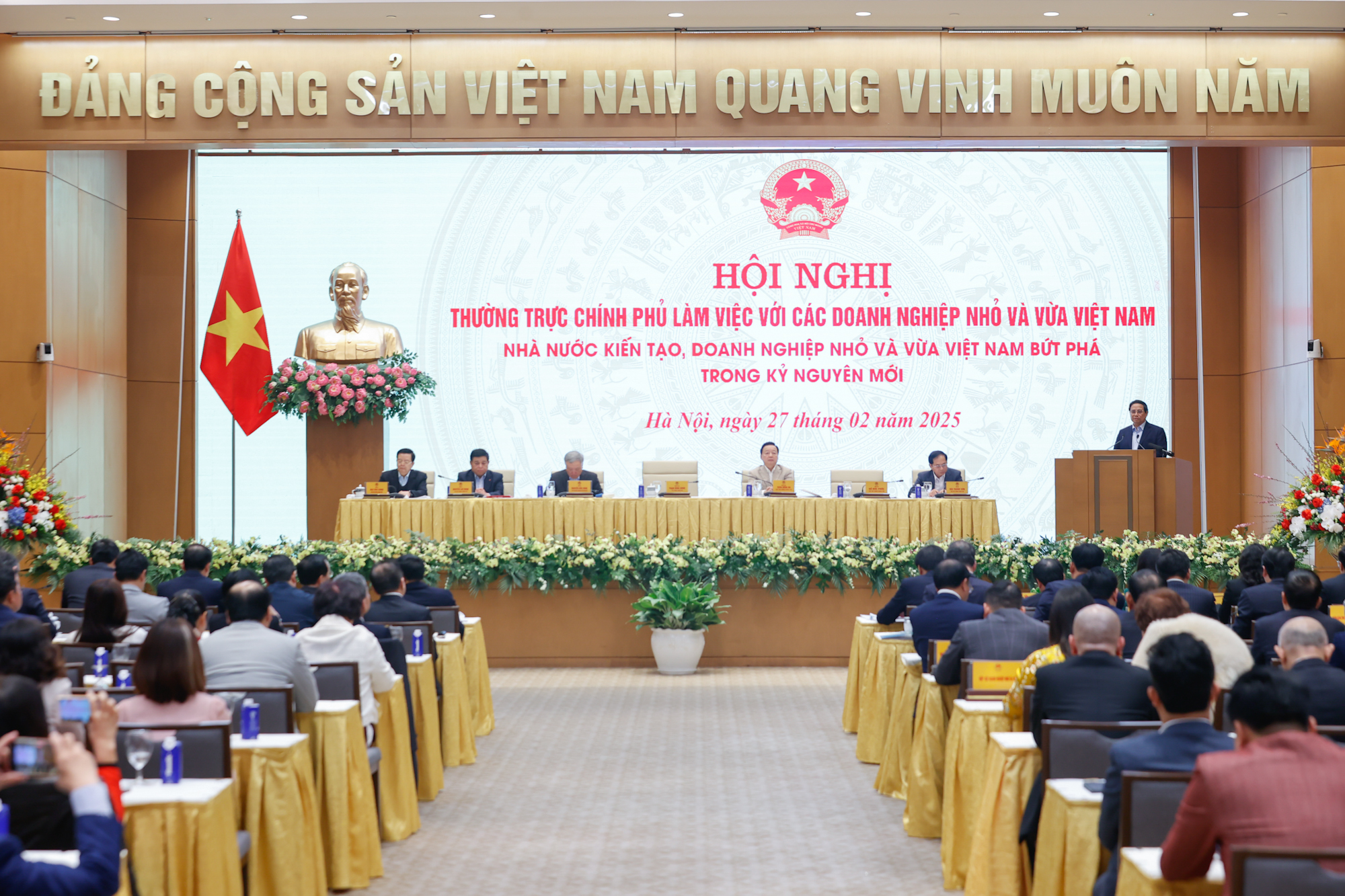 Thường trực Chính phủ làm việc với các doanh nghiệp nhỏ và vừa Việt Nam tại trụ sở Chính phủ ngày 27/2/2025. Ảnh: VGP/Nhật Bắc