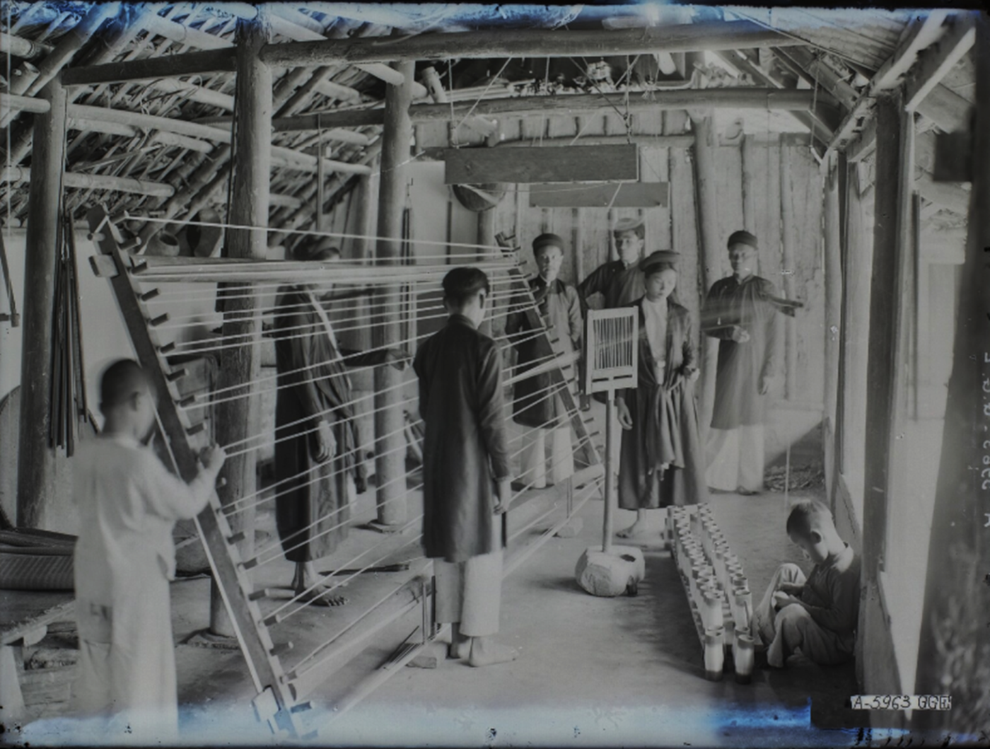 Một máy dệt lụa trong xưởng tại Hà Đông những năm 1920 – 1929. Nguồn: Bảo tàng Quai Branly