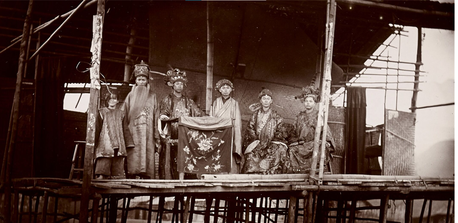 Cuối cùng, ở phía đầu sân khấu, hai cô đào nhỏ nhắn cực kỳ duyên dáng lả lướt, trong những xiêm áo dài thướt tha, mái tóc cầu kì cột chặt bằng một dải ruy băng lớn – một người màu hồng, một người màu xanh đậm, buộc thành hình bó hoa trên đỉnh đầu rồi buông lơi xuống vai, thả dài đến tận thắt lưng. Họ vừa múa vừa cất giọng trong một vở kịch phức tạp. Câu chuyện ra sao thì chẳng mấy quan trọng. Điều thu hút khán giả bản xứ chính là những động tác, và nhất là lối the thé đặc trưng mà người Hoa gọi là hát.
