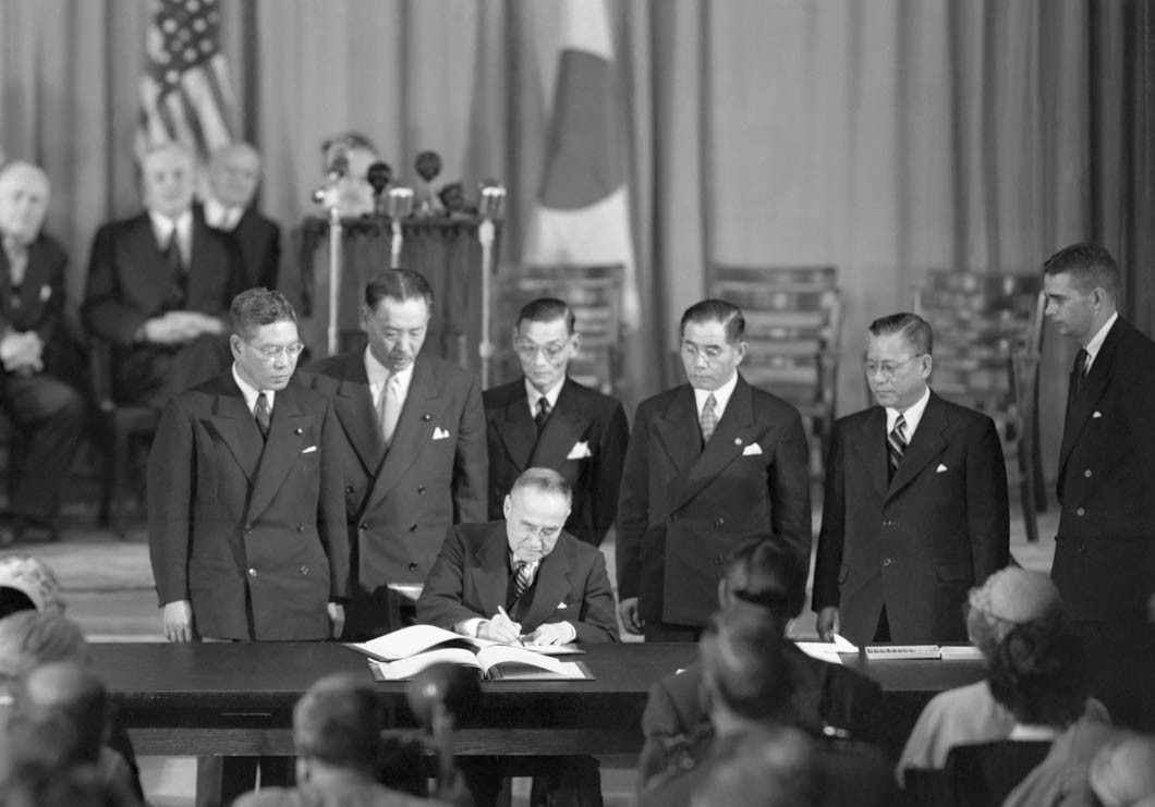 Năm 1951, Hiệp ước San Francisco được ký kết, chính thức chấm dứt tình trạng chiến tranh giữa Nhật Bản và 47 nước Đồng minh, kết thúc sự chiếm đóng của Mỹ và mở đường cho việc giải quyết các vấn đề về bồi thường thông qua các thỏa thuận song phương. Cùng năm, Thủ tướng Nhật Bản đương thời là ông Yoshida Shigeru ký với Mỹ bản Hiệp ước An ninh Hoa Kỳ – Nhật Bản. Hiệp ước cho phép Hoa Kỳ đóng quân tại Okinawa cùng những địa điểm trọng yếu khác tại Nhật Bản, biến quần đảo Nhật Bản thành một khía cạnh quan trọng trong kế hoạch toàn cầu của Washington.