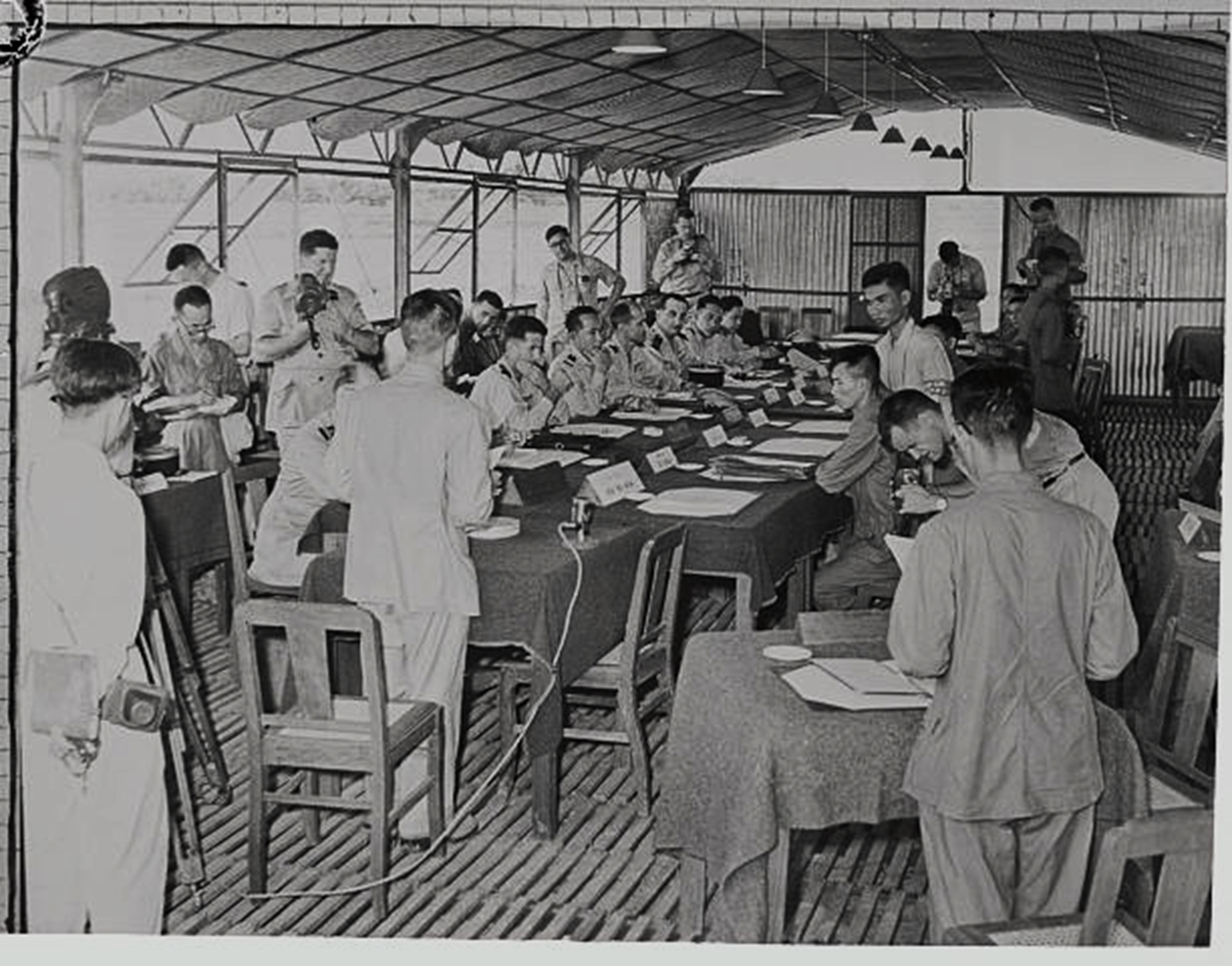 Quang cảnh hội nghị quân sự Trung Giã ngày 9/7/1954 bàn về vấn đề ngừng bắn, tập kết rút quân và trao đổi tù binh tại Hà Nội. Nguồn: Kho lưu trữ Bettmann