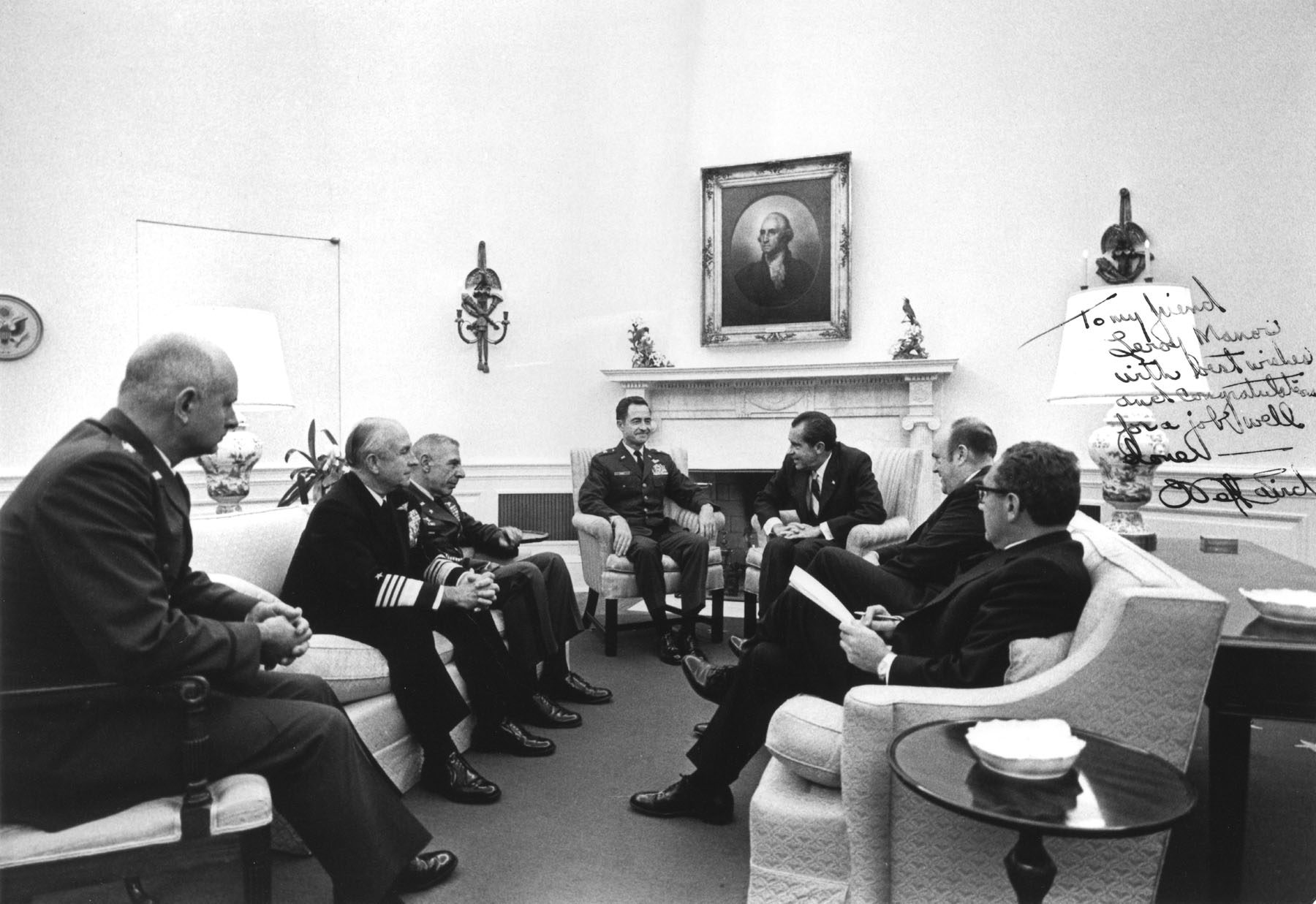 Tại trung tâm chỉ huy, Chủ tịch Hội đồng Tham mưu trưởng Liên quân Moorer lần lượt báo cáo định kỳ cho Nhà Trắng. Không rõ ông ta có nói chuyện trực tiếp với Tổng thống không, nhưng hầu hết các báo cáo của ông được cho là gửi đến Chuẩn tướng Alexander Haig thuộc đội ngũ của Kissinger.