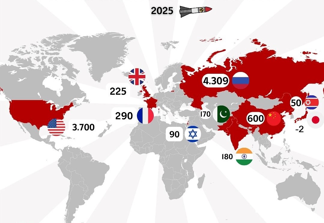 Theo “Niên giám của Viện nghiên cứu hòa bình Stockhnom-SIPRI 2025” công bố ngày 16/6/2025, Kho vũ khí hạt nhân toàn cầu không ngừng được mở rộng vả nâng cấp. Đến 2024, 9 nước sở hữu vũ khí hạt nhân Mỹ, Nga, Anh, Pháp, Trung Quốc, Ấn Độ, Pakistan, Triều Tiên và Israel đều đã tăng cường kế hoạch hiện đại hóa kho vũ khí hạt nhân của mình, không chỉ nâng cấp các vũ khí hạt nhân hiện có mà còn tăng thêm các chủng loại mới. Dự kiến đến tháng 1/2025, tất cả các kho vũ khí hạt nhân toàn cầu sẽ có đến gần 12241 đầu đạn hạt nhân, trong đó có khoảng 9614 đầu đạn đang nằm trong các kho quân sự có thể sử dụng vào bất cứ lúc nào và đã có 3912 đầu đạn đã được lắp trên tên lửa và máy bay, số còn lại được đặt trong trạng thái trù bị ở cấp trung ương. Điều khiến mọi người lo ngại là hiện có 2100 đầu đạn đang ở vào trạng thái sẵn sàng chiến đấu, hầu như toàn bộ đều thuộc về Mỹ và Nga.