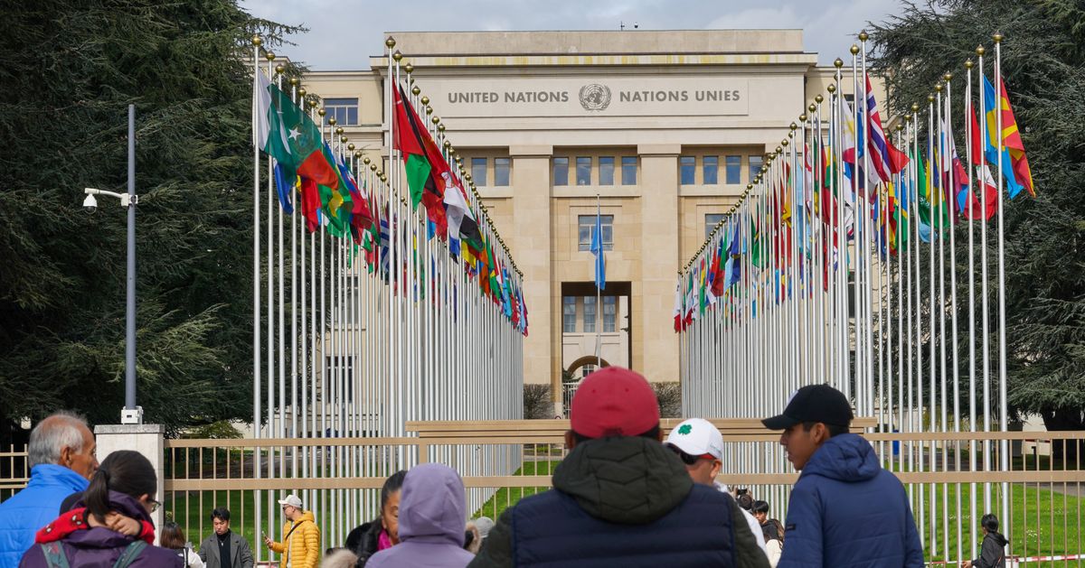 Washington không còn công nhận Liên hợp quốc là trung tâm duy trì trật tự thế giới… Hình ảnh người tham quan đứng bên ngoài tòa nhà Liên hợp quốc ở Geneva, Thụy Sĩ. Ảnh: Michael Nguyen/NurPhoto