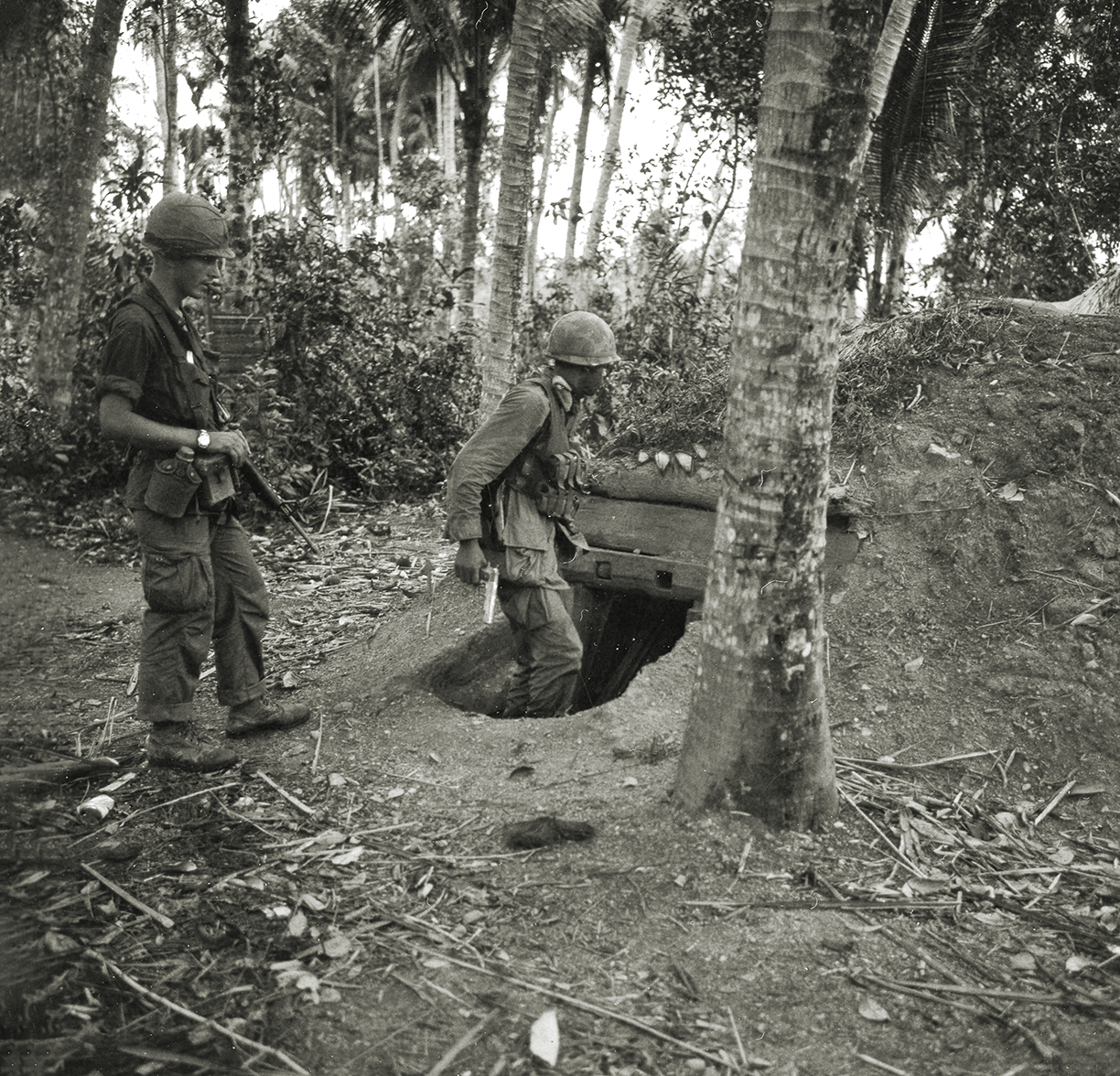 Bên dưới những tán cây, người Việt Nam tiến hành xây dựng các mạng lưới hầm trú ẩn kiên cố. Các hầm chính, nơi đặt bộ chỉ huy, được bảo vệ rất kỹ lưỡng – một lớp gỗ, một lớp đất, rồi tới các lớp gỗ và đất tiếp theo cao tới 2-3m. Để phá hủy một trong những căn hầm trú ẩn này cần phải đánh trúng trực tiếp bằng một quả bom 250 pound (hơn 110kg), một điều hiếm thấy trong thực tế. Các hầm nhỏ hơn được che chắn ở phía trên ít hơn nhưng vẫn đầy đủ và tất cả đều được nối với nhau bằng các chiến hào hình zíc zắc (một kiểu chiến hào giúp lính Việt Nam có thêm chỗ trú ẩn) đủ sâu để đứng lên và chiến đấu với quân Mỹ. Lính Mỹ ban đầu sẽ không biết đối thủ của mình đang ở đâu. Các đường bắn đã được dọn sạch, nhưng ngoài ra, bụi rậm vẫn được giữ nguyên để ngụy trang.